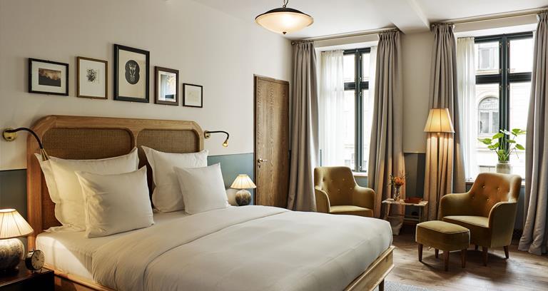 A fresh addition to Copenhagen’s emerging boutique hotel scene is Hotel Sanders. This 54-bedroom property that opened this month is situated within a classical Jugendstil building dating from 1869 that overlooks the Royal Danish Theatre. This setting is fitting; its designer Alexander Kolpin is a former professional ballet dancer (and film-maker), famous for winning the 1993 Benoir Prize of Dance, awarded to the best male dancer worldwide. The hotel is the third offering of the Kølpin group, following its relaxed beachside hotels Helenekilde Badehotel and Tisvildeleje Standhotel situated in the north of Denmark.