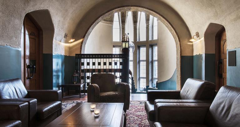 In an Art Nouveau style castle lies this rather unique proposition which focuses on bringing out the inner creative in guests. Instead of watching CNN and eating peanuts in your room, here you can hire art supplies and musical instruments for the duration of your stay. Rooms are in a chic minimalist style with chocolate brown leather sofas and the in house spa offers a veritable world tour of sybaritic indulgence- take your pick from the traditional Finnish sauna, the Turkish hammam or the ‘grotto’ steam sauna.