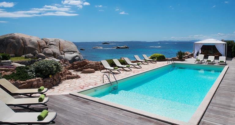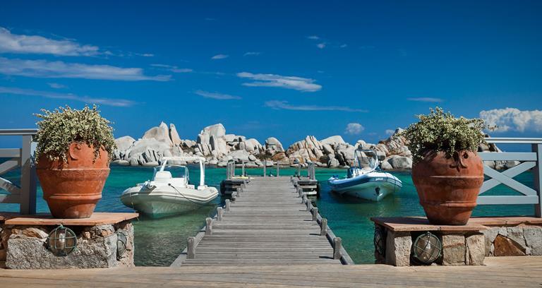 On the island of Cavallo’s southernmost tip, this seasonal white sand beachfront retreat boasts bold use of local stone to build up an alluring blend of rough-hewn charm with clean-cut modern comforts. An array of rooms and suites comprise the accommodations, beige and blue accented spaces that enhance the rugged oceanic setting of the resort – though take note that only one of the suites offers a sea view. Yacht moorings (up to 35 metres) are possible at the nearby Port of Cavallo and myriad excursions on offer from the hotel include a short hop back to Corsica for the Robert Trent Jones-designed Seperone Golf Course.
