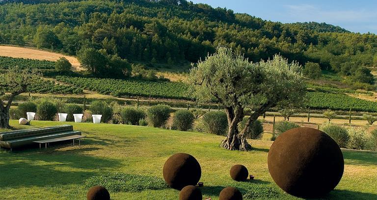 A 19-room green escape in Provenance for those with a keen interest in art and design, Domaine des Andéols was created in 2003 with the restoration of a family property comprised of stone houses. An amazing collection of contemporary art and furniture fills the premises, surrounding guests with the works of Warhol, De Rossi, Arad, Araki, van der Rohe, and Noguchi.