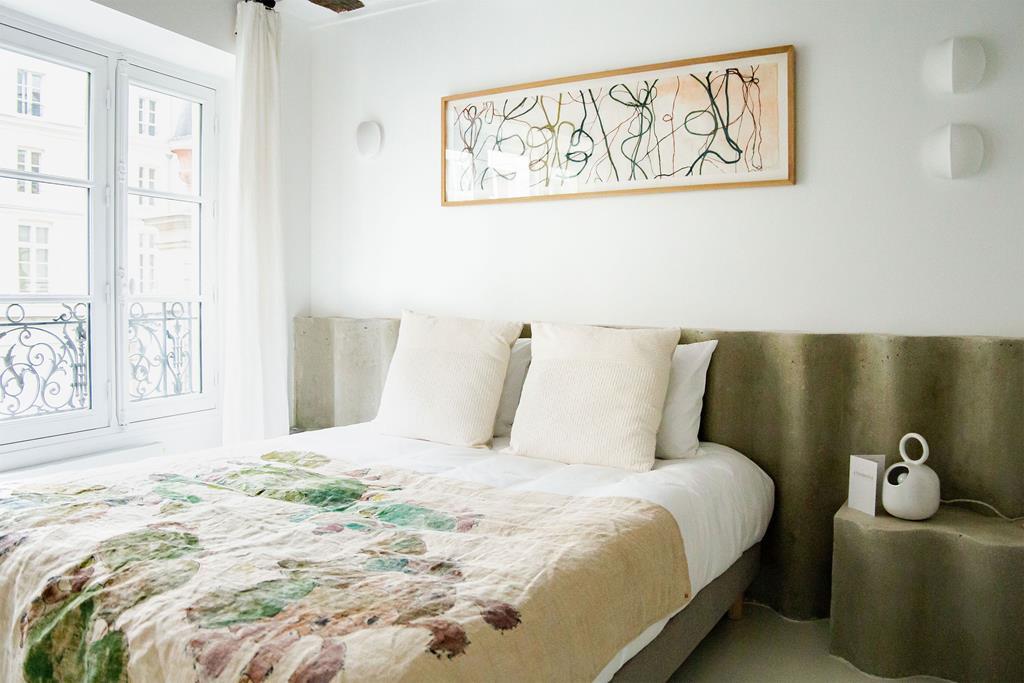 When it comes to breaking the mould, it isn’t Amélie du Chalard’s first rodeo. In 2015, she launched Amélie, Maison d’Art, to promote established and emerging contemporary artists and help clients build a collection with works displayed in a space resembling a private living room. In parallel, the gallerist takes care of installing artworks and curates for hotels, including Cour des Vosges in Paris and Nolinski in Venice. Constantly asked by her foreign clients to find them somewhere to stay that’s more intimate than a hotel, nicely decorated and with some art, Chalard decided to take matters into her own capable hands by creating Ambroise, a network of “collectors’ houses” for rent named after legendary art dealer Ambroise Vollard, a figure who profoundly influenced the history of modern art by discovering greats like Gauguin, Cézanne and Picasso. In Paris, Ambroise has two elegant apartments available: one in Saint-Germain (three bedrooms) and the other in the Marais (two bedrooms). The unique spaces give pride of place to designer pieces, made-to-measure contemporary creations, vintage items and art displays that evolve over time. For the duration of their stay, visitors also have access to a cultural concierge service that will introduce them to new ateliers, arrange meetings with artists and organise exhibition visits, turning the entire experience into a celebration of excellence and young talent.