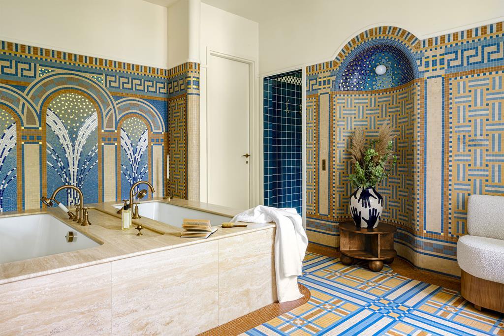 “We visit about 40 properties a year, and this one ticked all the boxes: an iconic avenue, a nice neighbourhood with a village-y feel, and Art Deco influences, a movement my brother and I love,” recounts Robin Michel, alongside his brother, Thibaud Elzière, cofounder of the brand. “The villa had been chopped up into Airbnbs; it was carnage. Deconstructing to rebuild something better is what we love to do.” Under the aegis of studio Claves Architecture, it took just a year of work to restore the property’s soul. “This place had something special about it. The original Art Deco motifs, the mosaics, the niches in the entryway, the ironwork on the staircase … everything seemed to point to music and surrealism,” highlights the interior architect, Soizic Fougeront.