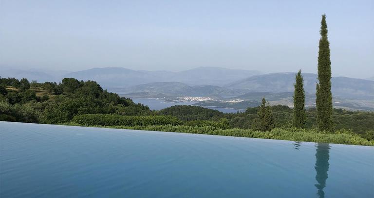Hidden among the hills above the northeastern coast of Corfu is the sybaritic Villa Vouno. With jaw-dropping panoramas over the undulating coastal countryside, this retreat provides an idyllic launchpad for a Grecian holiday fit for the Phaeacians.