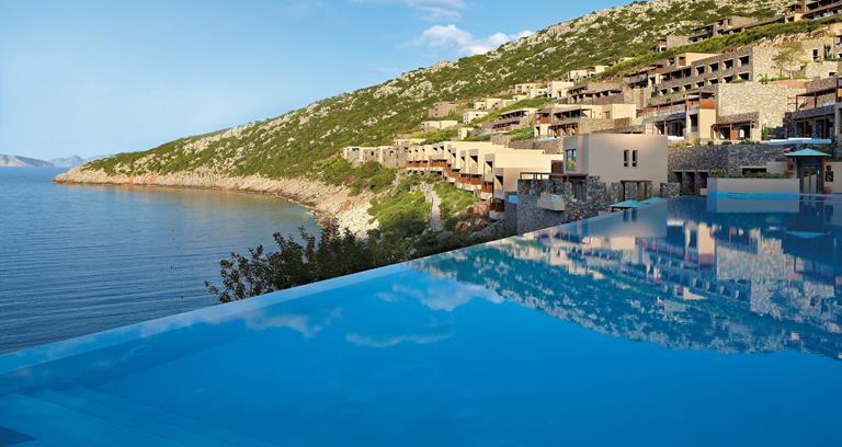 This immaculate retreat has become something of a local landmark, carved, as it is, out of a hillside rock on secluded Vathi beach. Rooms, suites and villas boast a chic, minimalist aesthetic as well as floor-to-ceiling windows for postcard-perfect views of the glittering azure waters ahead. Gourmands will delight in the hotel’s trio of eateries, including the fine-dining Ocean Restaurant and more casual a la carte Greek eatery, Taverna. Sybarites, meanwhile, need venture no further than the resort’s own spa, which aside from an generous spa menu, also features a Finnish sauna and Technogym-appointed fitness centre.