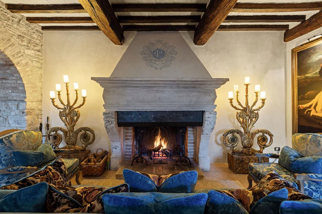 Once inside the medieval walls of the castle, the scene becomes eclectically cinematic, almost accidental, yet every detail is orchestrated by the owners: Count Benedikt Bolza, an architect, and his wife, Donna Nencia Corsini. Take the Palm Court, for example: a winter garden filled with rattan Peacock chairs and a 1908 Steinway piano. As evening falls, live music drifts through the space while guests sip cocktails before walking up the grand staircase to be seated at the elegant Ristorante al Castello. “This place is an invitation to slow down, to embrace the pace of life people knew in the 1920s and 1930s,” Bolza explains, pointing out portraits, heirlooms and pieces of contemporary design he created himself in La Tabaccaia, his on-site creative workshop.