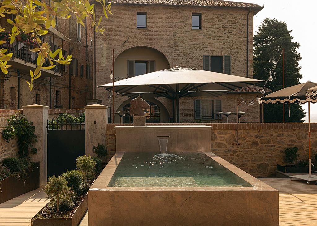 Nestled within these ancient walls is, a boutique hotel in a 14th-century palazzo restored by Pellizzari Studio and owned by Christiane Wassmann and her husband. The name (rastrello means “rake”) is emblematic: each autumn, locals take their rakes to harvest the olives, a ritual of unity, labour and renewal. Christiane herself is an olive-oil sommelier, and her extra-virgin olive oil has won multiple gold medals. Guests can explore its flavours in tastings, in the dishes at the Cucina & Giardino restaurant – one of Umbria’s culinary highlights – or through treatments in the wellness area, including the Umbrian Bliss Journey, which harnesses the oil’s natural properties.