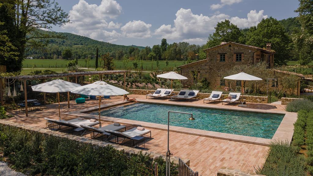 Reschio in Lisciano Niccone offers a bold and highly Instagrammable mix of historical heritage and timeless modernism, with 36 rooms and suites inside an 11th-century castle that once served as a fortified hill settlement during the centuries-long border struggle between the Papal States and the Republic of Florence. Spread across the 1,500ha estate are some 50 additional farmhouses, eight of which are available to rent, while others await restoration and sale.