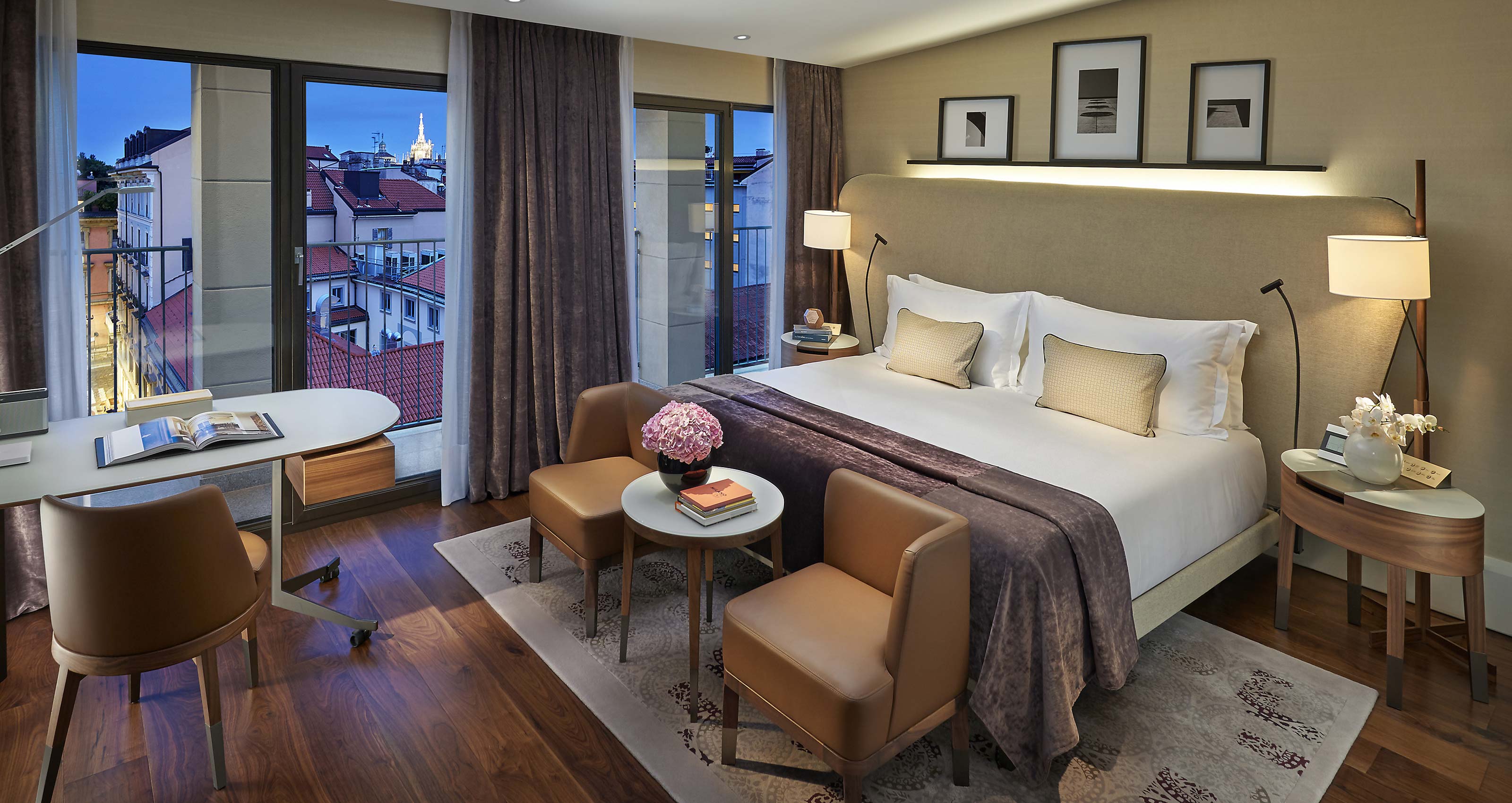 Designed by Antonio Citterio, the 104 rooms and beguiling public areas combine new and old to dramatic effect, reminiscent of Citterio’s designs at the nearby Bulgari Hotel. East Asian inflections combine with sumptuous Italian materials throughout – on best display in the surprisingly spacious suites.