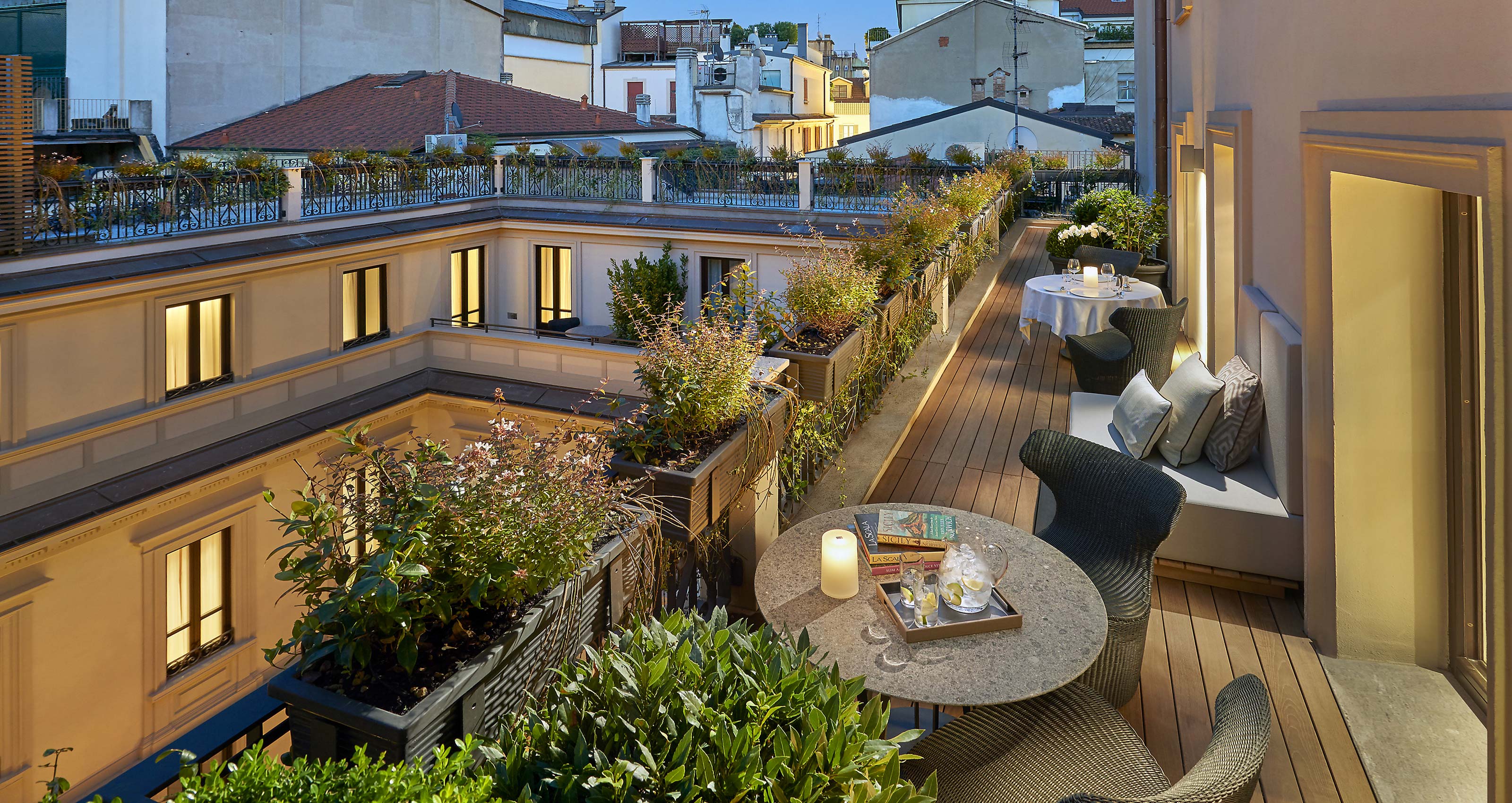 A stone’s throw from the city’s avenue of luxe, Via Montenapoleone, the diminutive hotel is entered through a stone archway recessed into a quiet lane. Comprising four 18th-century edifices, the eclectic urban mood is enhanced by two internal courtyards, one for dining, one for socialising.