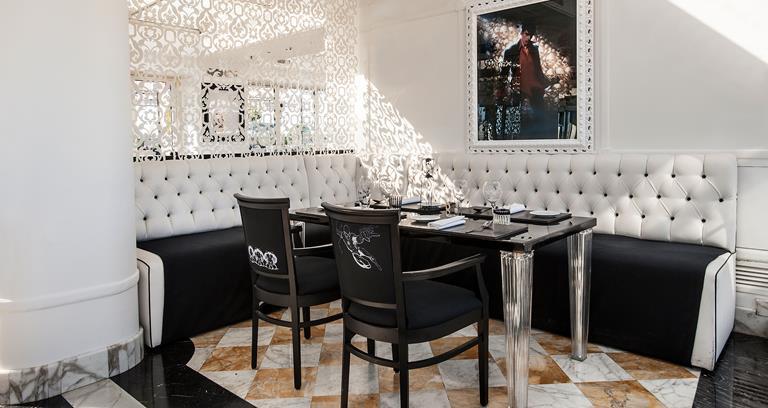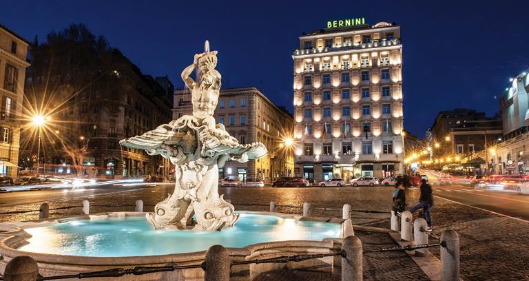 Overlooking the Piazza Barberini and the Tritone Fountain, Hotel Bernini Bristol stands as an elegant auberge rooted in history and classicism – its interior spaces recently renovated with respect for the building’s original 19th-century features, incorporating them seamlessly with contemporary flourishes. A jewel atop the hotel, chef Andrea Fusco’s Michelin-starred restaurant Giuda ballerino! lies on the rooftop level, offering a playful space that “pops”, in gentle contrast to its surrounds. Better still, the restaurant terrace looks out upon the rooftops of Trevi and beyond.