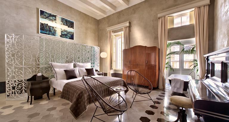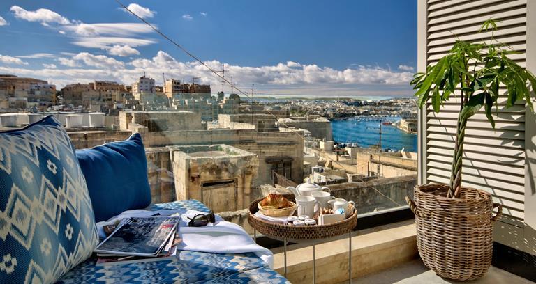 A most opulent addition to Valletta hotel scene: this upscale hostelry boasts just eight spacious, airy Chris Briffa-designed suites with plush furnishings and beautifully patterned tiles, complemented by large bathrooms with fine fixtures and standalone bathtubs. Sited in a restored 1830s-built edifice on a narrow street in the city centre, guests here are spoilt with amenities like in-suite Jacuzzis, a delightful shaded courtyard for evening cocktails and 24-hour concierge service.