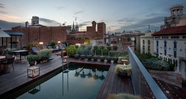 Housed within a distinctive historic pile in Barcelona’s Gothic Quarter, the 28 rooms and suites of this Mercer incorporate the time-weathered, characterful exterior into its interior spaces – think chipped old stone alcoves thoughtfully accented with modern ornamentations and exposed ancient brickwork offset by crisp whitewashed walls. Traditional Catalonian cuisine at the Mercer Restaurant, tapas with a seafood slant at Le Bouchon and a cocktail lounge take care of degustations, while a rooftop deck offers away-from-it-all solace.
