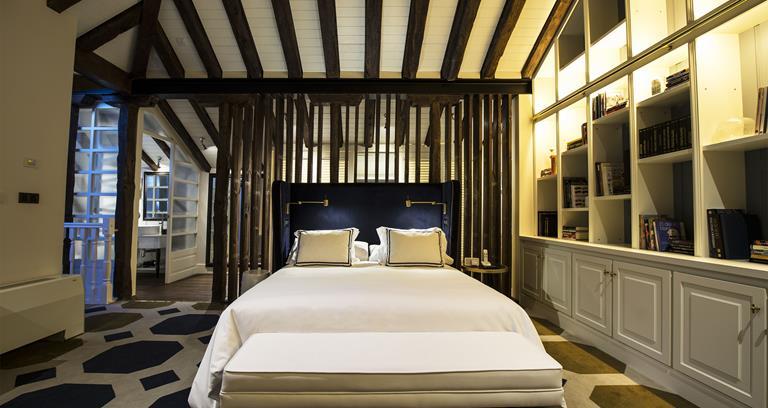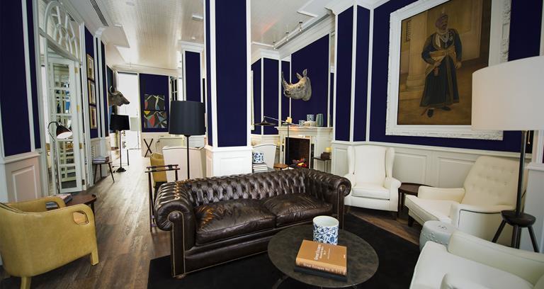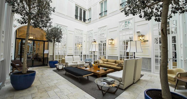 In a remodelled 19th-century building, this fabulous boutique hotel sits between the Chueca and Salesas neighbourhoods in a very hip and happening area. Interiors were designed by Lázaro Rosa Violán, who dipped the hotel in a colonial-style palette of white and blue shades, matched with intricate details and a charming, classic atmosphere. The lounge invites guests to relax with a drink of choice and finger-food cuisine, available at any time of day, while the light-flooded courtyard serves as a gorgeous dining room setting.