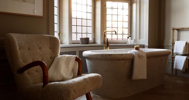 Several years ago, English designer Ilse Crawford caught the eye of Jeanette Mix, seeing her two contrasting dining rooms for Mathias Dahlgren’s eponymous restaurant at the city’s Grand Hôtel, Mix asked her to design the 12-key Ett Hem (“home” in Swedish), which opened three years ago in a peaceful, residential part of town. More private club than hotel, the property’s contemporary Scandinavian interiors filled with vintage pieces and exquisite George Jensen accessories make for a refreshing home-from-home atmosphere.