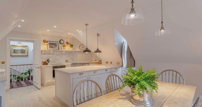 From the top floor Glenapp Castle in Ayrshire, Scotland, you can gaze out to the sea and spot the granite islet Ailsa Craig, the Isle of Arran, the Mull of Kintyre and, on the clearest of days, Ireland. It’s quite the spectacle from what is now the 420sq m penthouse, The Endeavour. Comprising four bedrooms, four bathrooms, a lounge and dining room, sauna, library, games room and massage room, the expansive setting – formerly the quarters of the First Lord of Inchcape, once the chairman of the Peninsular and Oriental Steam Navigation Company, better known as P&O – is an ode to the Scottish coast and its maritime history. The decor mixes traditional furnishings with modern touches, which is bolstered by an array of classic artworks and artefacts. Of course, rounding out a stay in The Endeavour is special access castle’s grounds and attractions – and, particularly for you, exclusive entrance to its roof and ramparts.