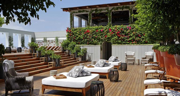 In the heart of West Hollywood, right on the Sunset Strip, Mondrian LA greets guests through its 9m mahogany doors. Rooms feature a modern platinum palette with stark white furnishings and reflective surfaces, while outside from the poolside lounge, experience incredible views of Los Angeles. Ocean-to-table cuisine is served at Herringbone restaurant, while night owls can look forward to guaranteed access to Skybar: an open-air, exclusive pavilion set above the Mondrian pool.