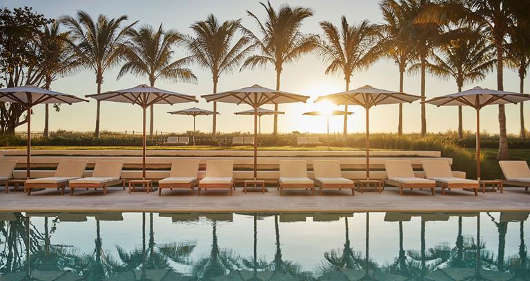 On first sight, this contemporary retreat belies the marque’s signature historic-meets-glamour vibe. In the 1930s, the original Miami Beach venue was often frequented by “Cabana Row” aristocrats (Sinatra among them), plus a paintbrush-in-hand Winston Churchill. And while it’s true the Four Seasons’ abundant array of Joseph Dirand-outfitted guest rooms have high-tech draws, such as 55-inch flatscreen TVs and bedside charging stations, the real treat are the nostalgic Cabana Studios, replete with terrazzo floors and modish wooden deck lanais.