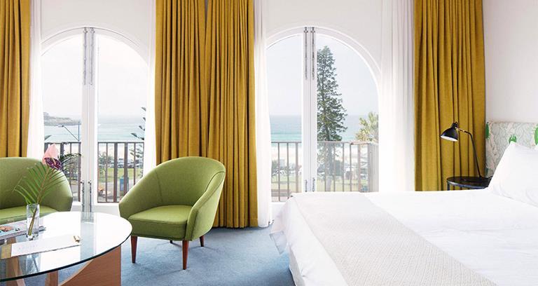 Housed in a historic building, this boutique hotel offers Bondi coast hospitality, with 12 individually styled open-plan rooms equipped with king beds on the upper two floors. Expansive wrap-around terraces and panoramic beach views only add to the appeal.