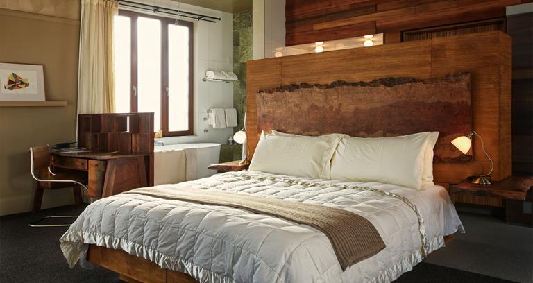 More luxury wooden pods than treehouses, these unique creations from architect Tony Wilson, perched up in the Manuka trees, look out haughtily over olive groves and the immense Kaikoura mountains. Exquisite as they look on the outside, the comfort factor is upped further when you climb in: expect a Kholer spa bath, monsoon shower, a high-tech Danish wood burning stove and Bose music system. There’s even a mini kitchen with fresh coffee beans and grinder and in house chefs who can deliver meals to your pod on a rainy day when you’ll seldom feel closer to nature whilst being this comfortable.