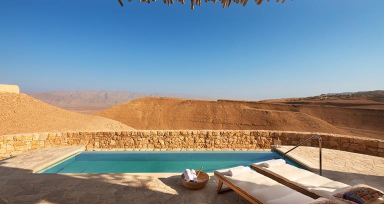A 60-suite spa resort of biblical proportions, this hotel – Six Senses’ first in Israel – brings the ancient splendour of the Negev desert to the forefront of experiential luxury. While days could easily be spent lapping in your private pool, unique desert excursions such as visiting Timna Park, camel trekking (or camel farming) and ritualistic mountain hikes await.