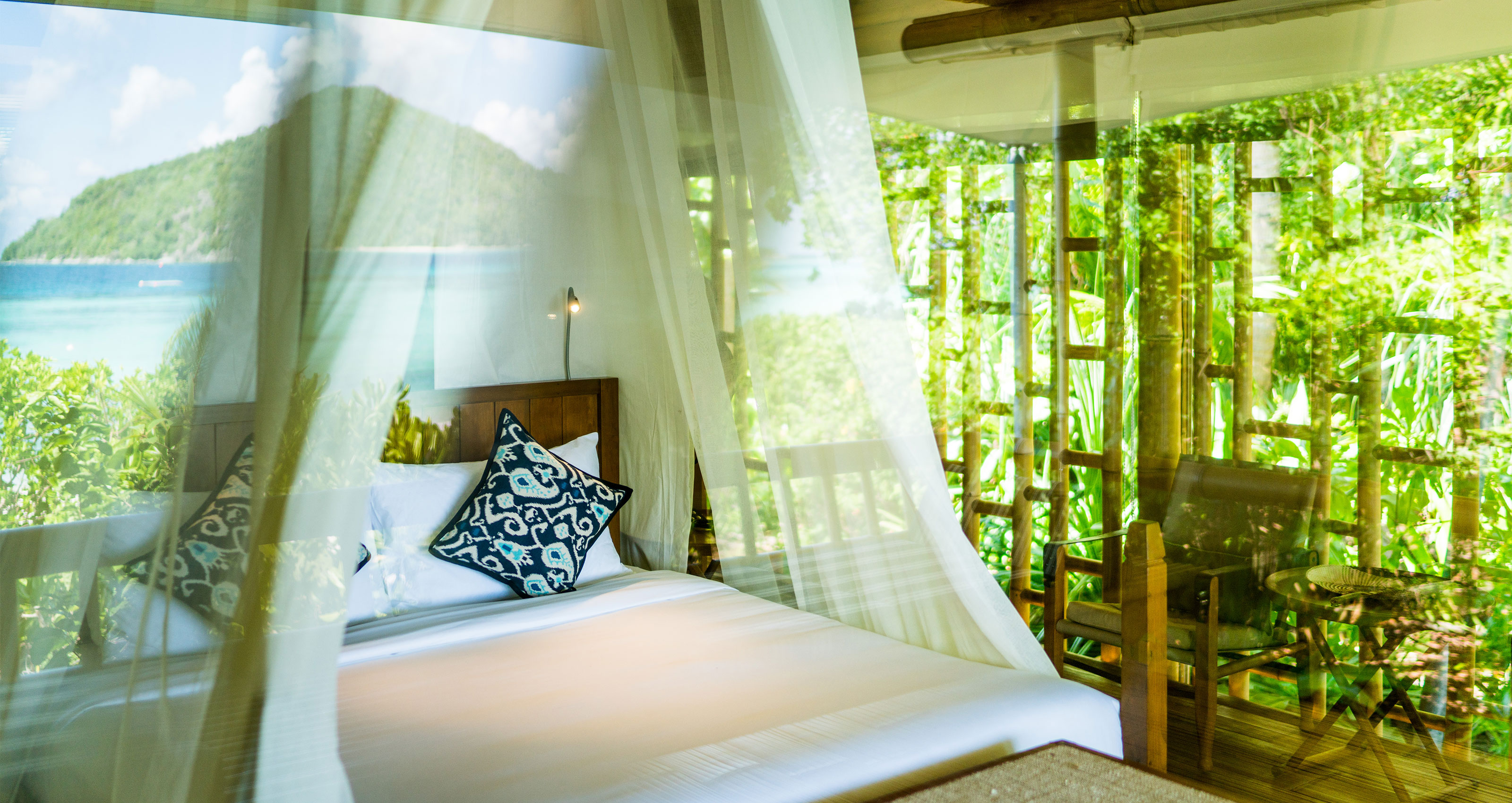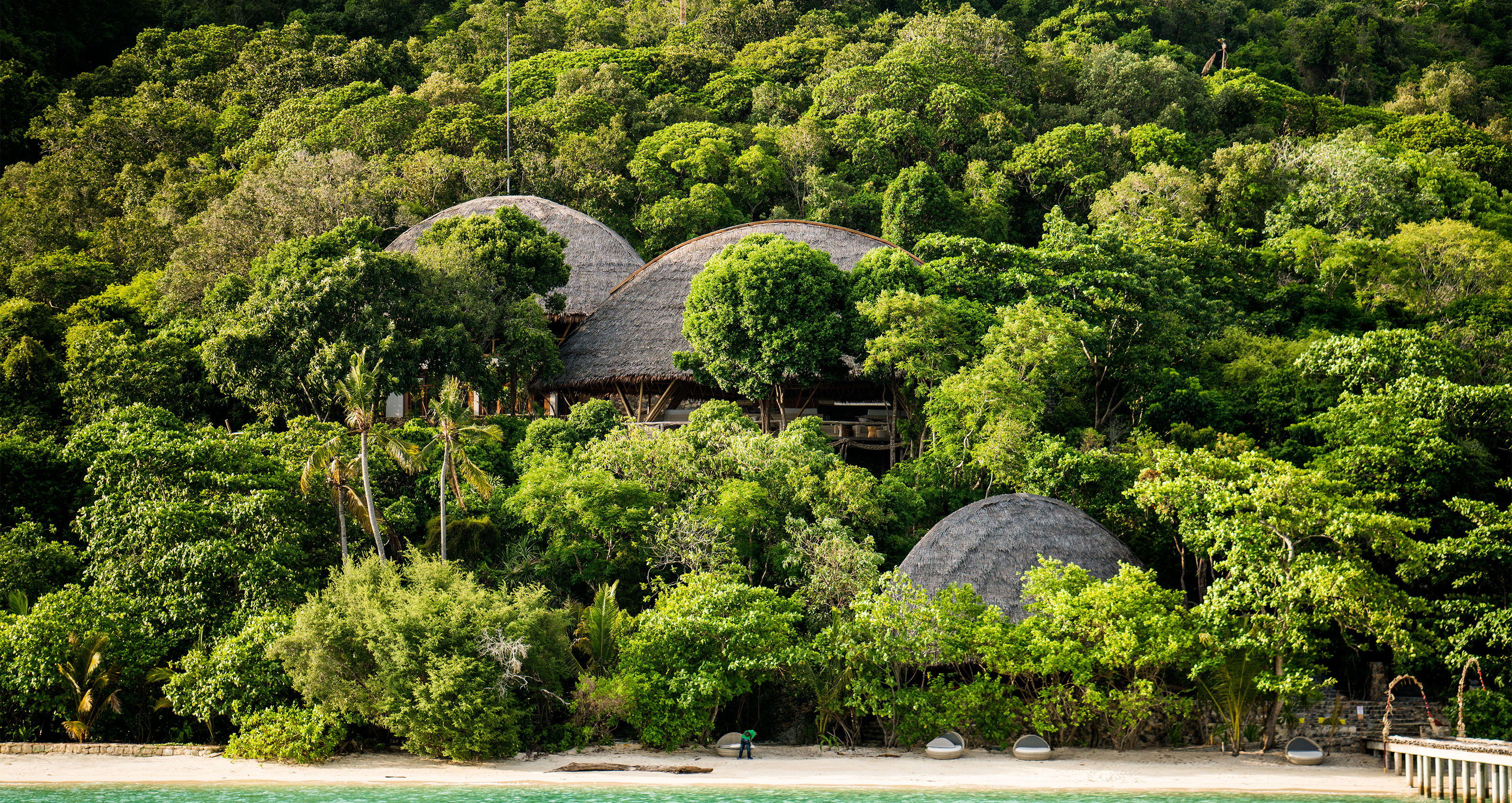 Accessible only by private seaplane from Batam into Bawah, its 35 eco-conscious, handcrafted suites and over-water bungalows across the previously uninhabited expanse feature bamboo and teak furnishings, recycled-copper and stripped-chrome bathrooms, and offer serene sea views. You get to them via two paths lined with sea-almond and fig trees. And the no-TV policy in the rooms should help guests forget the outside world.