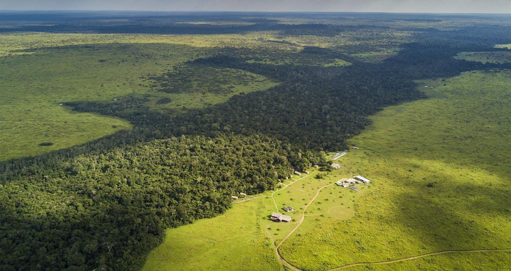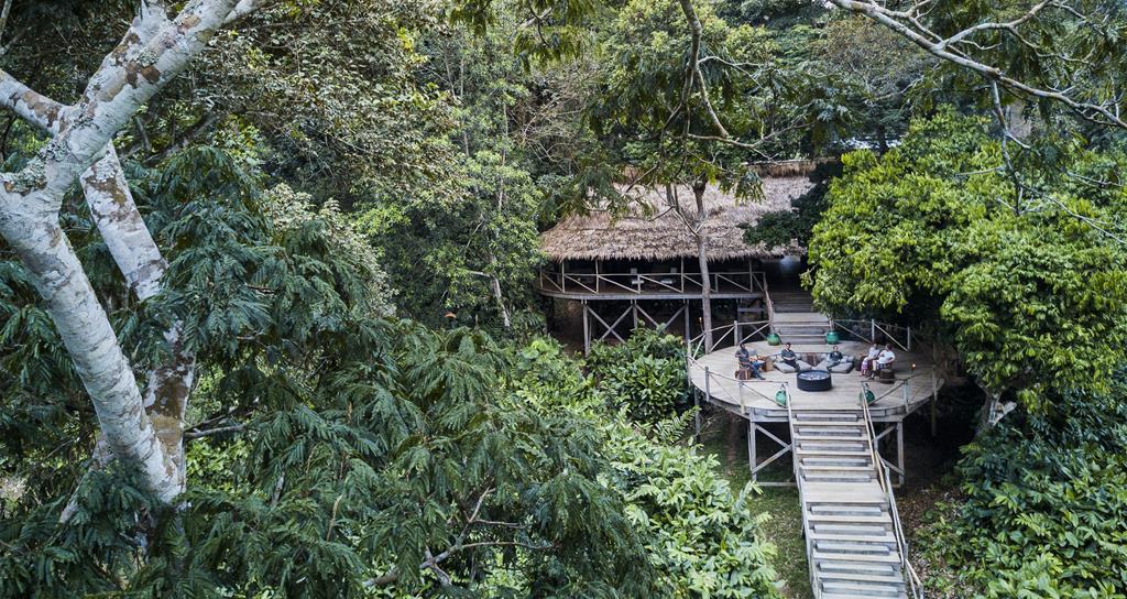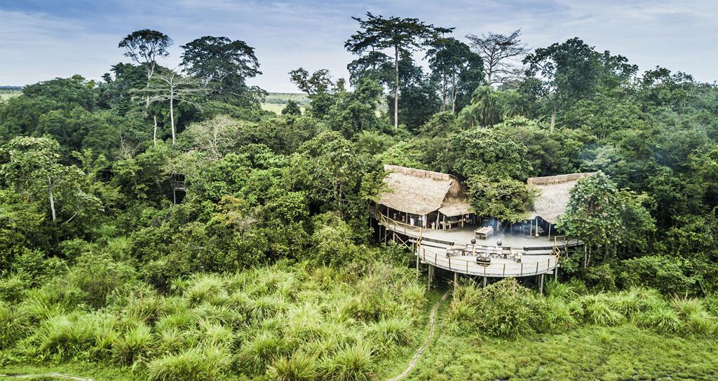 The Explorations Company organises seven nights in Odzala-Kokoua National Park, including three nights at Ngaga Lodge (with two gorilla tracks), two nights on the baï at Lango Lodge, and two nights along the river at Mboko Lodge, including return scheduled flights from Brazzaville.