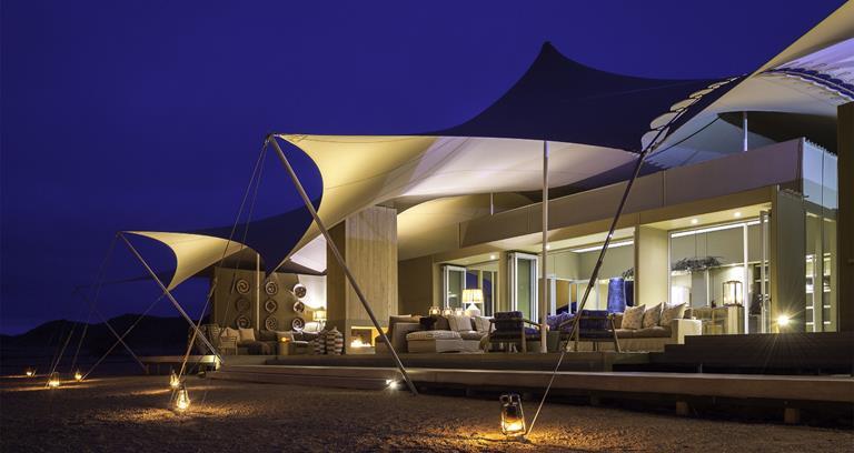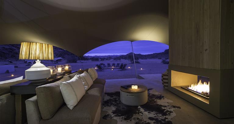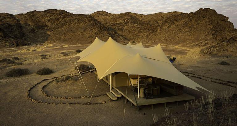 Wilderness Safari’s northernmost camp, sitting atop the Palmwag Concession nature reserve – itself abutting the Skeleton Coast national park – Hoanib sits in stark solidarity; a vast expanse of remote desert wilderness ripe for game drives, walks, sight-spotting of oases and the unforgettable Skeleton coastline. An eco-friendly operation, including power generated from the sun and a naturalistic approach to insulation and airflow, leaves the en suite tents a cool, modernistic space in mellow desert hues from which to kick back and reflect on the stark scenery.