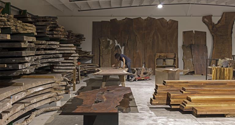 California modernism and craftsmanship adorns the rugged workshop walls and floors of woodworker Taylor Donsker. The self-taught craftsman builds bespoke furnishings from slabs of rich Northern California walnut (also known as Claro walnut) and blackened steel according to a strict philosophy, “Every material has a grain, a strength and a weakness, an origin and an end.”