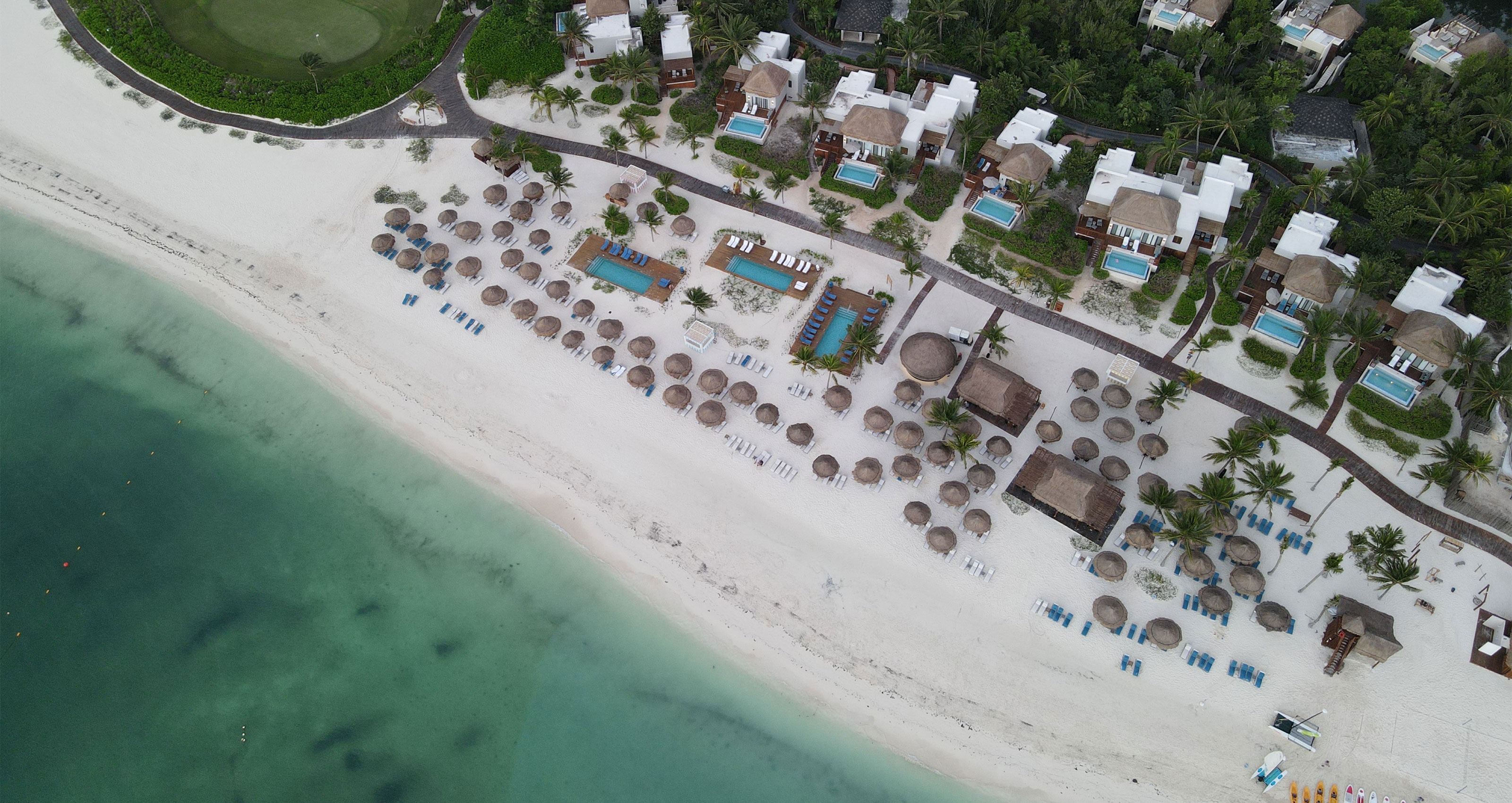 Do it all – or nothing at all – at the private jungle and oceanside getaway, known for its gorgeous coastal surrounds and array of on-resort activities. Relax under the swaying palms of the white-sand beach that stretches as far as the eye can see. Claim a shaded chaise lounge at five idyllic resort pools and toast happy hour with a tropical cocktail at the swim-up bar. Take a Mexican cooking class or try a mezcal tasting. Or go exploring and spot exotic parrots and monkeys from a resort boat in the mangrove-filled jungle.