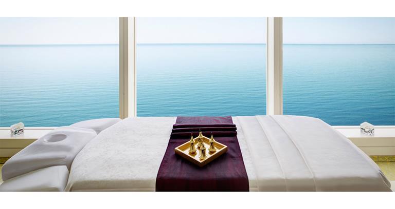 Perched 150m above the Arabian Gulf, the pampering begins almost immediately. Stretching over two floors – with separate men’s and women’s amenities – reinvigorating treatments aim to balance body, mind and spirit. Ultra-luxe remedies range from organic body wraps, to caviar eye massages and healing regimens using specially sourced crystal stones.