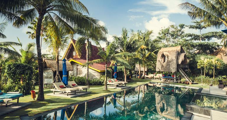 Retreat into this flower-dotted “art village”, where the emphasis is firmly on yoga and wellbeing. A variety of daily classes based on skill level ensure there are options for all guests (and non-guests too), and the wellness programme is bolstered by the Merapu Svaasthya spa that joins Western and Eastern worlds through its alcohol- and wax-free products sourced from the resort’s own organic gardens. For those sticking around, the guest rooms are sculpted out of restored wood imported from the region’s islands.