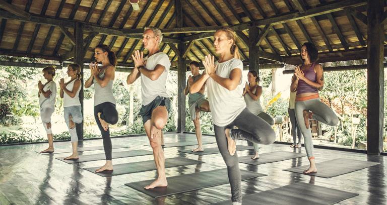 Holistic treatments and yoga amid wooden villas